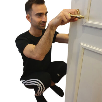 Ankle knee crossover at wall – heel rocker (Postural träning, Posturala grundövningar)