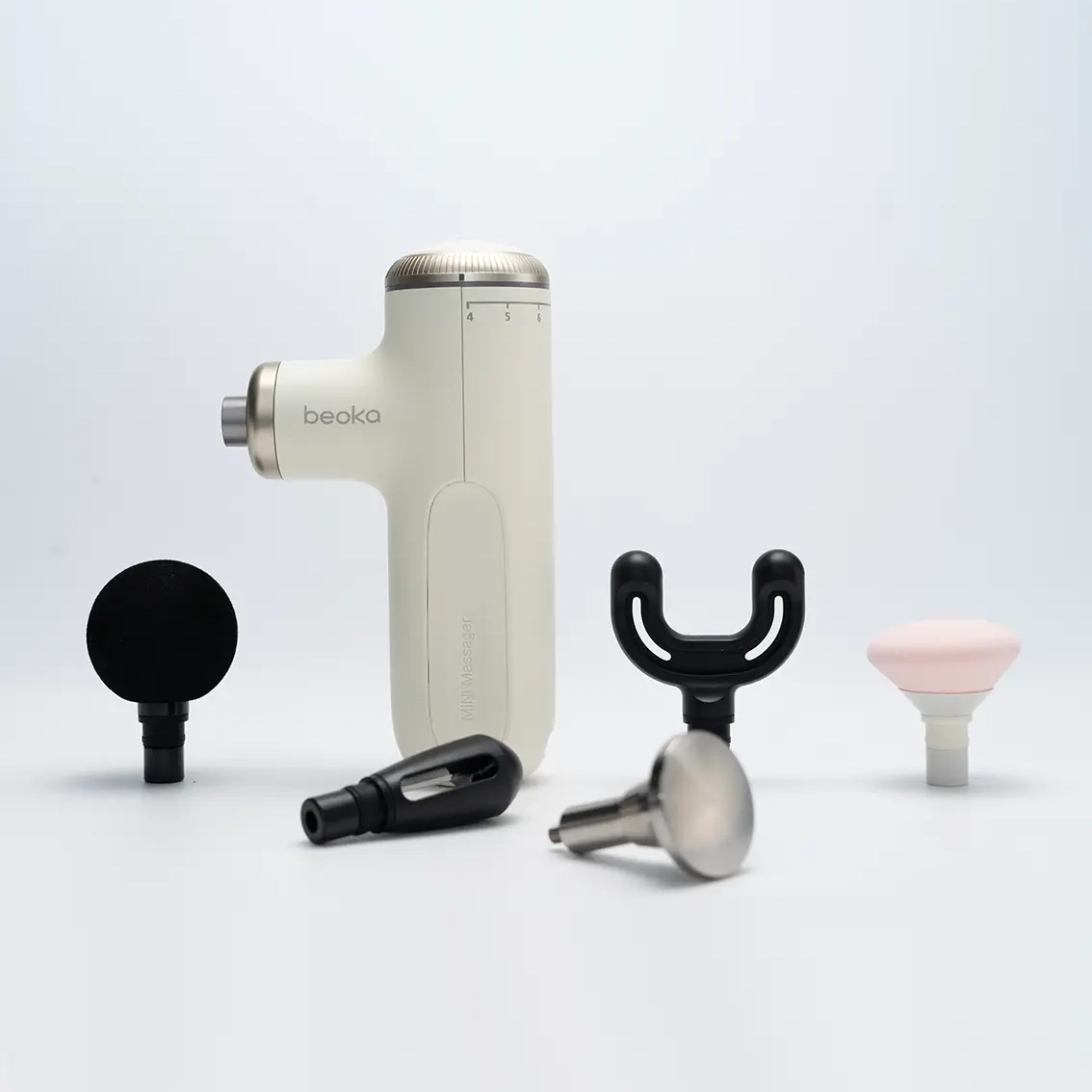 Beoka Mini Pro är en portabel multikompetent massagepistol som kombinerar stor effekt med låg vikt och låg ljudnivå. Den variabla slaglängden 4–10 mm och frekvensspannet 800-3000 rpm, kraften på 13 kg (stall force) samt bredden av munstycken gör att du kan växla mellan mjuk, ytligare behandling och djup vävnadsstimulering – i samma enhet.