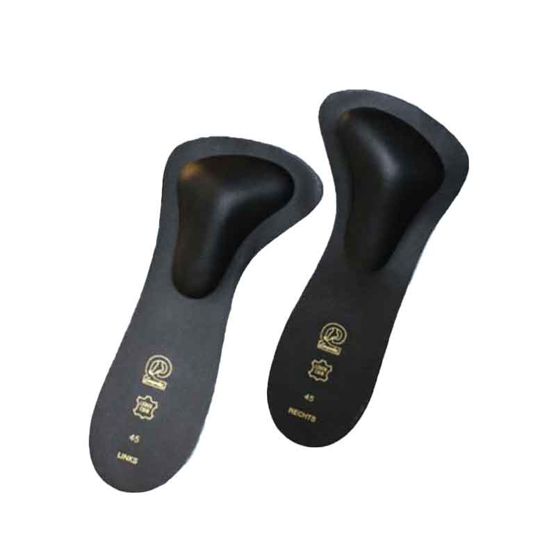 Pelottsula med inbyggd T-pelott för extra stöd av främre fotvalvet, trampdyna, stortå och tår. Finns i olika storlekar för optimal komfort och effekt och är tillverkad i svart skinn.